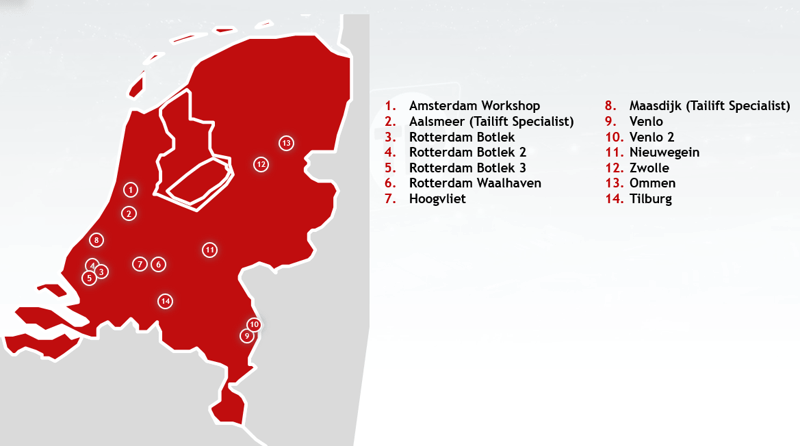 Bij TIP werk je mee in één van onze 14 moderne werkplaatsen, verspreid door heel Nederland. Twee locaties zijn zelfs gespecialiseerd in Tailift-service, waardoor je je kennis en vakmanschap verder kunt ontwikkelen.